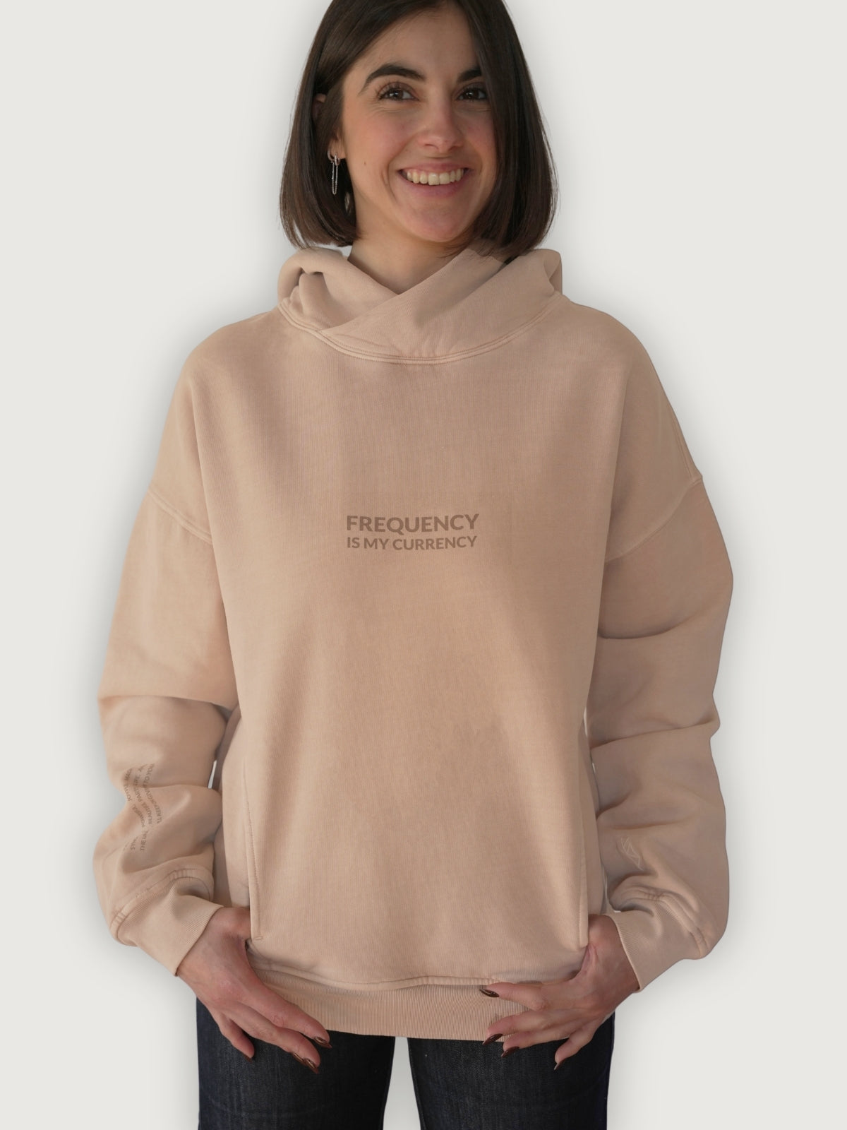 Your thoughts and emotions create a signature frequency. When you're in coherence — feeling elevated, heart-centered emotions — you broadcast energy into the quantum field that draws matching experiences. Frequency Hoodie helps you embody that energy, moment by moment. This hoodie is a vibrational anchor.